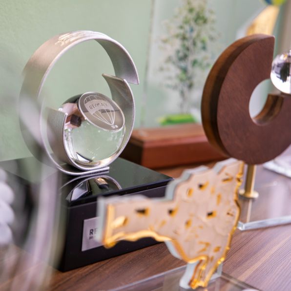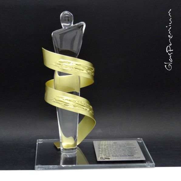 O vidro é um material muito usado em troféus modernos e personalizados. Ele tem transparência, um bom nível de brilho e pode ser moldado em formatos variados. É ideal para quem busca equilíbrio entre sofisticação e versatilidade.