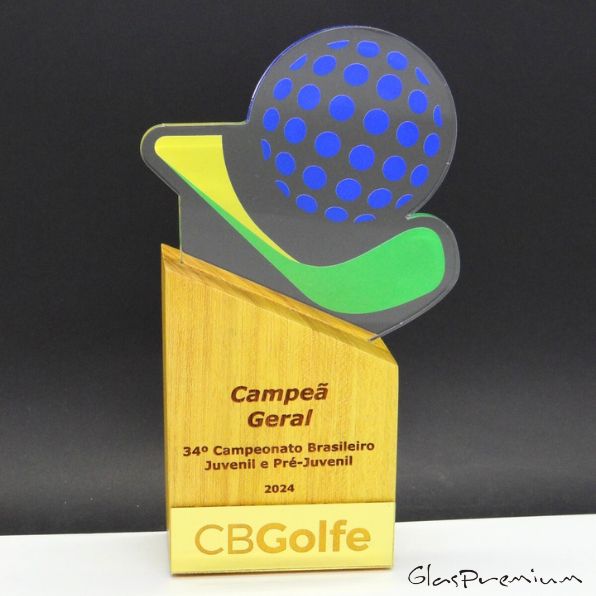 Troféu com Base de Madeira e Acrílico com gravação UV.